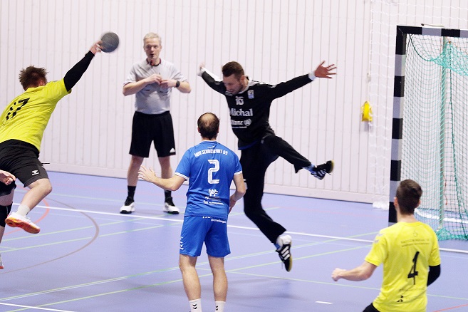 UNTERDÜRRBACH / SCHONUNGEN – Das war doch mal ein tolles Saisonfinale für die Schonunger Bayernliga-Ringer, die am finalen Wettkampftag auch das zweite Derby gewonnen haben: Auswärts beim Meister in Unterdürrbach gleich mit 19:9. - Lucca Bialowas vom HC Erlangen unterstützt den TV Großwallstadt im Dezember