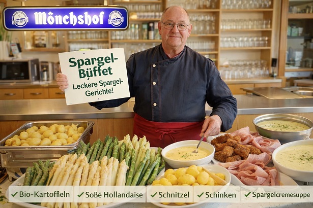 ERMERSHAUSEN – Die große Frage ist, ob´s schon Spargelgerichte geben kann an Ostern. Ganz so ausgeschlossen ist das nicht, spätestens aber danach wird das im Gasthaus Goldener Schwan ein großes Thema. In Ermershausen im Landkreis Haßberge. - Spargel satt: In der Kleingartengaststätte Oberndorf werden an sieben Samtagabenden Buffets angeboten