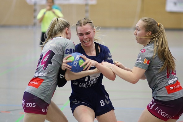 SCHWEINFURT – Drei Spiele, drei Siege: Die männliche Jugend der Schweinfurter Schnüdel feierte am Wochenende drei Erfolge. Und auch die weibliche U17 siegte. Unser Aufmacherbild zeigt eine Szene der jungen Damen. - Drei Mal Erster gegen Zweiter, Teil 3: Haard/ Nüdlingen mit Goldenem Tor in Oberleichtersbach und nun einem Matchball – FOTOS!