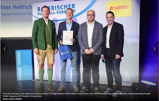 BFV-Vizepräsidentin Inge Pirner ergänzte: „Dass sich unser Bundestrainer Julian Nagelsmann heute die Zeit genommen hat, um sich persönlich für das ehrenamtliche Engagement unserer Preisträgerinnen und Preisträger zu bedanken, ist ein eindrucksvolles Zeichen der Wertschätzung und zeigt, dass die ehrenamtliche Arbeit zwar oft im Hintergrund erledigt wird, aber eben nicht unbemerkt bleibt.“