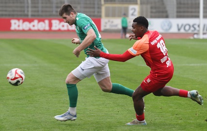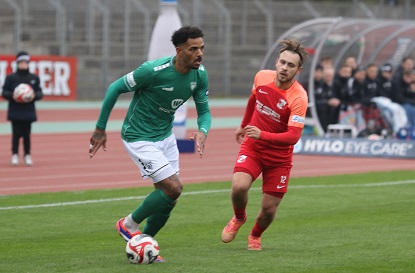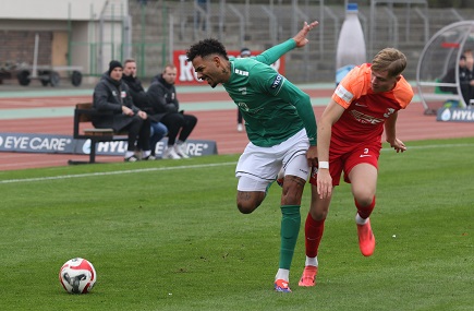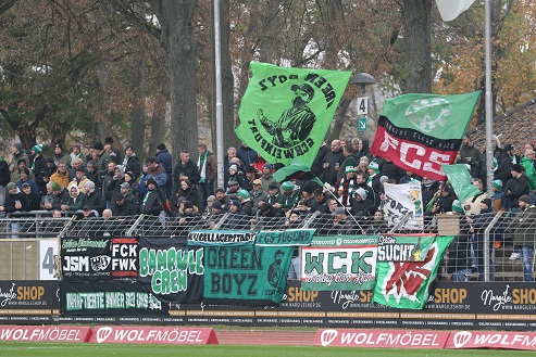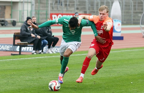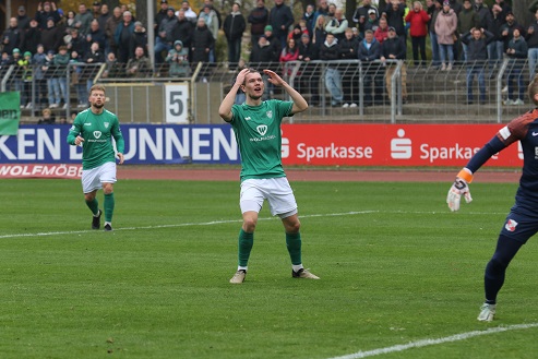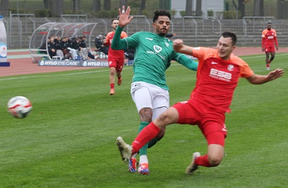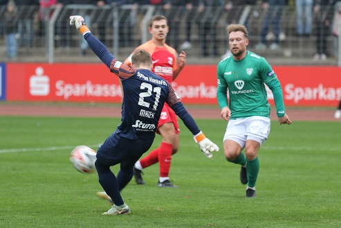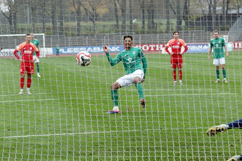 November-Blues dennoch im Sachs-Stadion, wo gerade mal knapp über 1000 Fans die „Dorfbuam“ sehen wollten. Also die Gäste beim Auftritt gegen die Nummer eins der Liga. Beim Anpfiff und nach wenigen Minuten, als Devin Angleberger eine Riesenchance leichtfertig vergab, hätte wohl niemand im relativ weiten Rund daran geglaubt, dass knapp zwei Stunden später die Träume vom Aufstieg in die 3. Liga, von Reisen nach Rostock und Dortmund und von Gastspielen von Essen oder 1860 München plötzlich wieder akut allgegenwärtig sein dürfen.