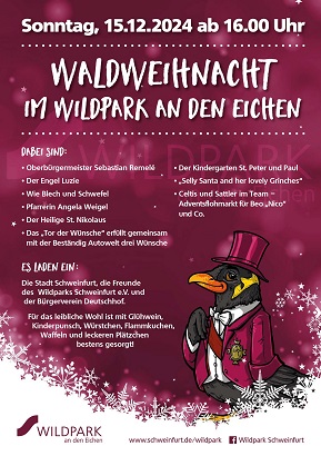 Vorgestellt wurde zudem das Event am Sonntag, den 15. Dezember, ab 16 Uhr. Erstmals seit 2019 findet heuer wieder die Waldweihnacht im Wildpark statt. Erst bremste Corona sie aus, dann personeller Notstand. Neben der Stadt laden auch die Freunde des Wildparks und der Bürgerverein Deutschhof zu ein paar geselligen Stunden – übrigens genau eine Woche nach dem Schnüdelsingen im Sachs-Stadion – ein. Inmitten der Natur.
