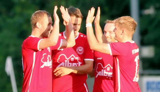 Unsere drei Bilder ganz unten entstanden beim 6:0 gegen Fuchsstadt (Jubelbild), beim 3:0 in Hain (Tyrell Walton beim Kopfball-Tor) und beim 3:0 in Lichtenfels (Dominik Popp schirmt gegen zwei Gastgeber den Ball ab. Bei allen drei Partien war die Redaktion von www.mainfranken.news dabei.