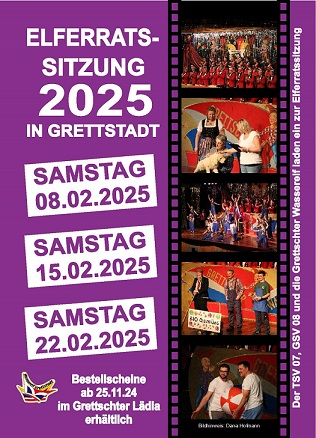 Der Vorverkauf für die Karten startet am 25.11.2025, erhältlich exklusiv im Grettschter Lädla. Der Abgabeschluss für Bestellungen ist der 30.12.2025. Alternativ kann der Bestellschein direkt auf der Homepage des TSV 07 Grettstadt unter www.tsvgrettstadt.de und des Gesangverein Grettstadt https://gesangverein-grettstadt.de/ heruntergeladen werden.