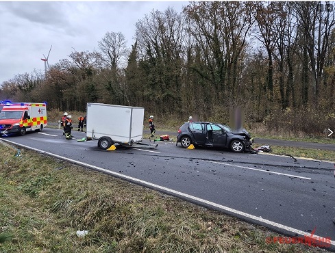 Zwischen Eßleben und Werneck kam es zu einem Zusammenstoß von insgesamt drei Fahrzeugen, zwei davon mit Anhängern. Nachdem eine Person infolge des Unfalls schwer verletzt wurde, ließ die Einsatzleitung die Alarmstufe auf THL 2 erhöhen und die Feuerwehr Mühlhausen nachfordern.