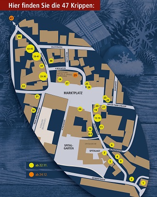Dementsprechend vergrößert sich auch die Anzahl der gezeigten Krippen erheblich. Die Zahl der Szenen hat sich mehr als verdoppelt: Insgesamt werden heuer 47 verschiedene Ensembles in den Schaufenstern und Kirchen zu sehen sein. Ein extra gestalteter Flyer zeigt die Standorte der einzelnen Krippen auf und gibt eine kurze Beschreibung. Neu ist auch, dass es neben der Beschriftung der einzelnen Krippen zusätzliche Info-Tafeln geben wird, die Wissenswertes rund um die Weihnachtskrippen vermitteln.