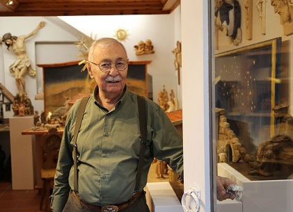Was Metz in seiner Werkstatt produziert, wird in einer Ausstellung im vorderen Teil des Hauses präsentiert. Dort finden sich wahre Schätze aus seiner Arbeit der vergangenen 67 Jahre. Auch seine allererste Krippe, die er mit 15 Jahren gemacht hat. „Sie ist unverkäuflich“, sagt er, während er zwischen den kleineren und großen Krippen, Marienfiguren, Engeln und Tieren steht, die er alle in der Vergangenheit geschnitzt hat. In den einzelnen Figuren können Personen aus dem echten Leben erkannt werden. „Das macht meine Figuren aus, dass sie einem jeden Tag auf der Straße begegnen können.“