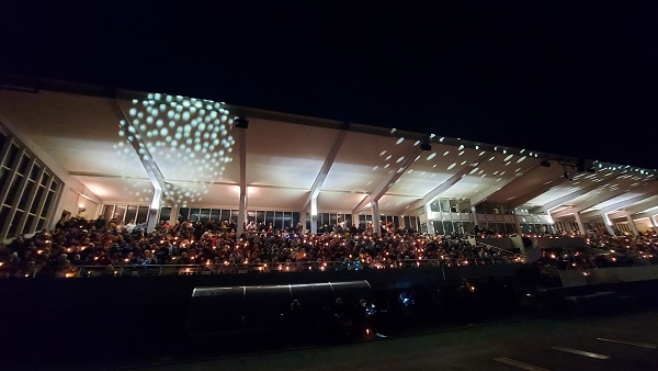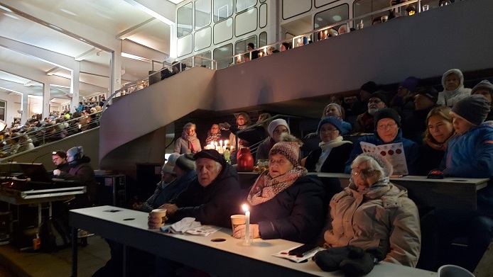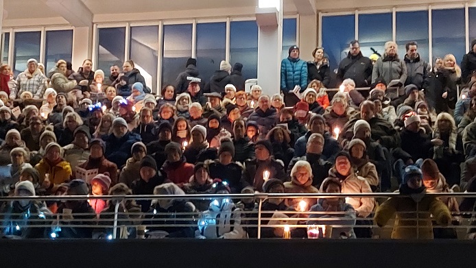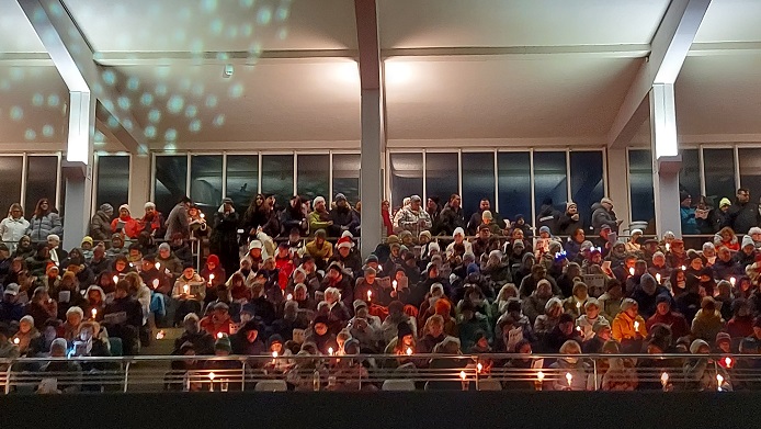 An die Besucherzahl des Debüts vor einigen Jahren reichte die Nachfrage zwar auch diesmal nicht heran. Doch um die 800 Menschen dürften es am Sonntagabend gewesen sein, die im Dunkeln und bei zum Glück geschlossenen Schleusen von oben zum zweiten Advent Lieder sangen.