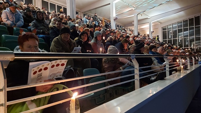 SCHWEINFURT – Eine komplett gefüllte Tribüne haben die Schnüdel-Fußballer nicht allzu oft hinter sich stehen. Beim Schnüdel-Singen, dem (vor-)weihnachtlichen Event im Sachs-Stadion, waren diesmal so gut wie alle Plätze besetzt.