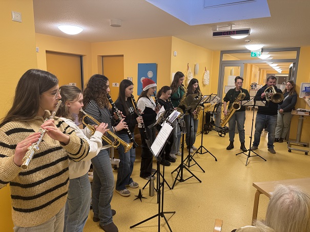 Die jungen Musiker haben in den verschiedenen Wohnbereichen jeweils 20 Minuten gespielt und so die festliche Musik direkt zu den Seniorinnen und Senioren gebracht.