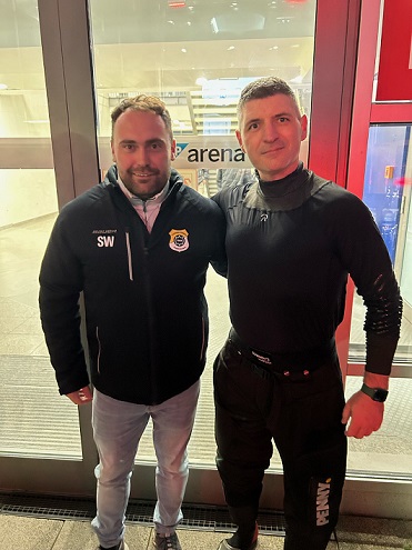 OBERWERRN – Unlängst haben sie sich in Mannheim getroffen. In der SAP-Arena leitete Christopher Schadewaldt am 15. November die Eishockey-DEL-Partie der Adler gegen die Augsburger Panther. Unter dem fast 12.000 Zuschauern beim 6:2-Sieg der Hausherren: Sebastian Walz.
