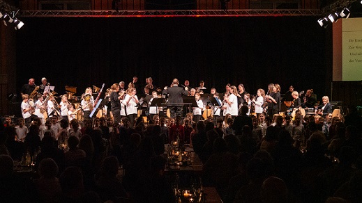 Das Orchester überzeugte in „I will always love you“ mit vollem, ausgewogenem Klang und Musikschulleiterin Theresa Romes brachte in ihrer Rede zum Ausdruck: „Ich finde es wunderbar, dass unser Jugendblasorchester heute die „Free World Fantasy“ spielt – eine Komposition über die Hoffnung auf eine Welt ohne Krieg.“ In diesem anspruchsvollen Werk entlockte der Dirigent dem Orchester besonders differenzierte und vielfarbige Klänge. Für die passende Weihnachtsstimmung sorgte das Medley „Swing into Christmas“.
