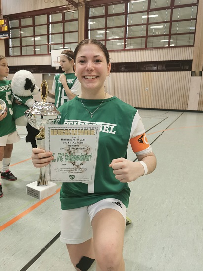 Im Endspiel kam es nun auf ein Aufeinandertreffen mit dem SV 1920 Veitshöchheim, den man im Vorrundenspiel lediglich einen Punkt abnehmen konnte. Aber nun war der Motor warmgelaufen und die Schweinfurter waren im Flow und ließen von der ersten Minute dem Gegner keine Räume, um hier Spiel zu entwickeln. Eine frühe Führung brachte die Schweinfurter in Aufschwung, so dass die Partie sehr einseitig wurde. Mit einem verdienten 4:1 holten sich die Schweinfurter Mädels die Hallenkrone in Kürnach in die Kugellagerstadt.