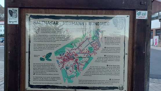 Dem Architekten widmete man einen eigenen Rundwanderweg mit überschau- und machbaren drei Kilometern Länge, aber 190 Meter Höhenunterschied. Der Weg ist aufregender als gedacht, denn er startet mit dem Aufstieg auf den 500 Meter hohen Kreuzberg, DEM Aussichtspunkt des Ortes.