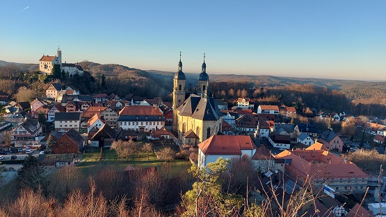 Bislang fuhren sie immer durch und hielten das Auto deshalb nicht an, weil alle Parkplätze dort kostenpflichtig sind. Am Feiertag war das nicht der Fall. Am Friedhof gibt es ganz viele Stellplätze, wenige hundert Meter entfernt wartet das Zentrum mit – klar! – dem bekannten Wahrzeichen: Der Basilika von Gößweinstein, die Wallfahrtskirche von Balthasar Neumann.