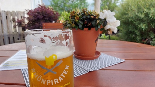 Zunächst ging´s in den Biergarten der Rhönpiraten unweit des Ostheimer Sportplatzes. Ein Pirator, der untergärige Doppelbock, und ein IPA, das kaltgehopfte Starkbier, wurden zum Glück nur in 0,4-Gläsern ausgeschenkt.