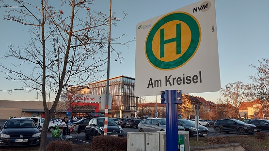 Wenn sie aus der Richtung Innenstadt kommt, dann steigt sich nun „Am Kreisel“ aus und ist nah dran am Kaufland. Das ist sie auch, wenn sie vom Bergl kommt oder wenn sie zurück in den Bus einsteigen will Richtung Innenstadt. Auch die gegenüberliegende Haltestelle „Am Kreisel“ befindet sich nah am Supermarkt.