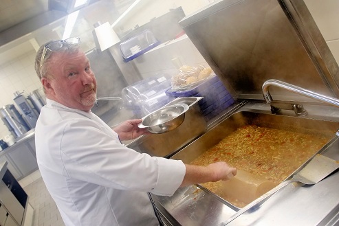 Es gab mal wieder einen Eintopf, in dem sich meist gemischte Zutaten befinden wie natürlich Gemüse, Fleisch, Nudeln oder Spätzle, oft gibt´s dazu Brötchen oder Baguette. Als treuer und langjähriger Partner spendet das Haus immer wieder ein warmes Mittagessen für hungrige Bürger,an die Suppenküche der Kindertafel.