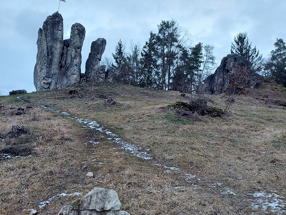 Ein Ziel haben wir noch, das ist ebenfalls ein Muss und bedeutet wiederum ein paar Schritte einen kleinen Hügel nach oben: Der kleine Ort Großenohe ist Ausgangspunkt für die Besichtigung der fränkischen Drei Zinnen, einer der gewiss schönsten Felsenformationen in der Gegend.