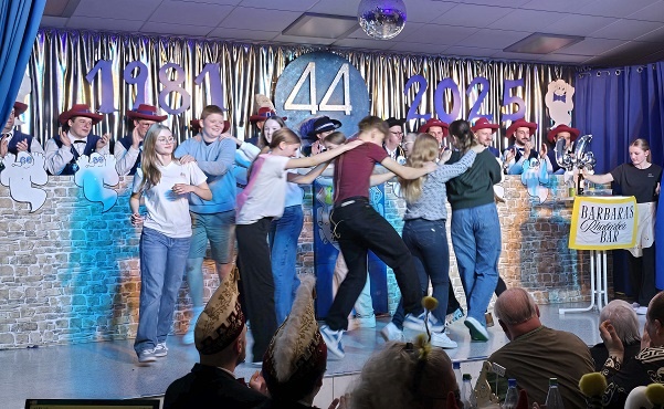Zum Auftakt der Sitzung 2025 begeisterten die 16 Tänzerinnen der Jugend-Schlossgeister-Garde (Hannah Büttner, Ina Neubert, Anna Hartmann, Anna Derleder, Marie Heurich, Sophia Konschu, Emmi Götz, Greta Lotter, Cataleya Back, Lina Lindner, Verena Derleth, Ronja Luff, Laura Schütz, Leoni Schneider, Andrea Warmut und Emmely Weber) unter der Leitung ihrer Trainerinnen Jennifer und Lilly Hartmann und Larissa Hegmann, sowie den Betreuerinnen Sabine Back und Annette Derleder auf der Faschingsbühne das Publikum in Mainberg. Ihr schwungvoller Marschtanz eröffnete den Abend und erntete viel Applaus.