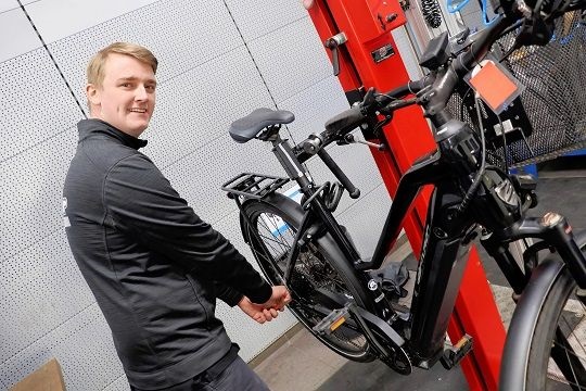 Er empfiehlt, einmal im Jahr das Fahrrad durchchecken zu lassen. Zum Einstellen der Bremsen und der Schaltung, zur Überprüfung des Reifendrucks oder zum Nachziehen von Schrauben, beispielsweise auch am Gepäckträger. „Damit können wir die Verkehrssicherheit des Fahrrads verbessern“, sagt Niclas Rödel.