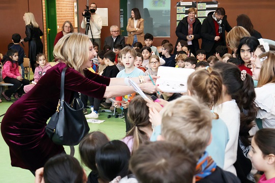 Brückenschlag: Um die 70 Frühstückspakete liefert die Kindertafel täglich an die Friedrich Rückert-Schule, die Anna Stolz danach besuchte. Um zunächst Sabrina Neckov eine „Schulleiterin mit Herzblut und Leidenschaft“ zu nennen, „die Herausragendes leistet“. In einer Schule mit einem besonders hohen Migrationshintergrund. Die rund 260 Kinder empfingen die Ministerin in der Turnhalle und erfuhren bei einer Fragestunde, dass ihr Hund Toni heißt und was sie machen würde, wenn sie alles bestimmen dürfte: „Noch mehr Lehrer einstellen!“
