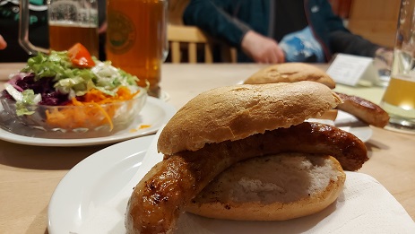 Die beiden Schonunger entschieden sich für ein paar Gezwickte, also für die guten Bratwürste im Brötchen, und für dazu einen Beilagensalat. Kann man mal machen… Oder?