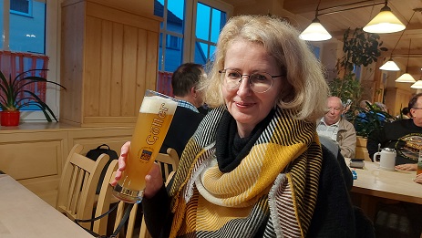 Ein paar Umdrehungen mehr als normales Bier hat das im Norden der Haßberge, weshalb man (frau hielt sich an das alkoholfreie Weißbier, das die Brauerei Göller aus Zeil am Main liefert) natürlich auch etwas essen muss.