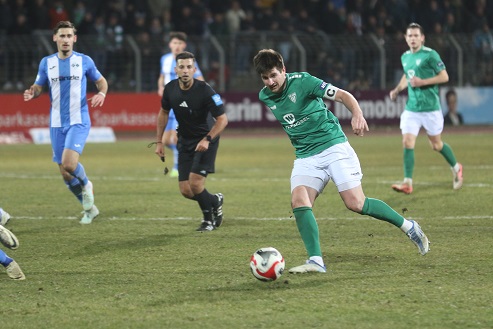 Irgendwie passte es, dass ausgerechnet das Spieltagsgesicht Michael Dellinger das Goldene Tor köpfte. Nach einer Flanke von Martin Thomann unmittelbar vor dem Pausenpfiff. „Der Ball kam in meine Richtung, ich musste ihn nur noch reindrücken“, grinste der 31 Jahre alte und nun elffache Torschütze der Schnüdel. „Wir haben in 2025 zwei Spiele gebraucht, um uns zu finden“, weiß Dellinger, der vom „Flow“ spricht, von einem „kleinen Lauf“.