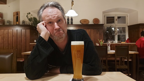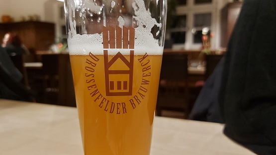 Es wäre sonst freilich auch ein bisschen viel geworden, denn wenige Kilometer entfernt wartete bereits die nächste Gaststätte: In Neudrossenfeld gibt´s die Produkte der Drossenfelder Bräuwerck Brauerei in einem Gasthaus mit zudem feiner Küche. Petra schaute beim Cappuccino zu, wie sich Michael an einen Weizenbock heran wagte, an sich nicht so sein Ding. Das Bier namens BollWerck hatte 6,9 Umdrehungen. Während sich der Zeiger der Uhr der 19 näherte. Also: Der kleine der 7 und der große der 12…