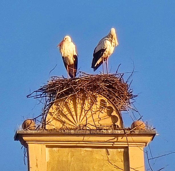 Seit das Paar auf dem Volkacher Diebenturm entdeckt worden ist, gehen die Blicke der Passanten in der Nähe des Turms immer wieder nach oben, zaubert das lautstarke Willkommens-Geklapper den Beobachtenden ein Lächeln ins Gesicht. „Schön, dass das Paar wieder hier in Volkach ist. Diesmal sogar etwas früher als letztes Jahr, es ist ein gutes Zeichen für Volkach“, so lautet der einstimmige Tenor.