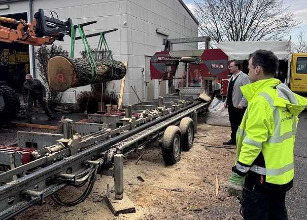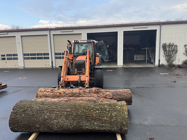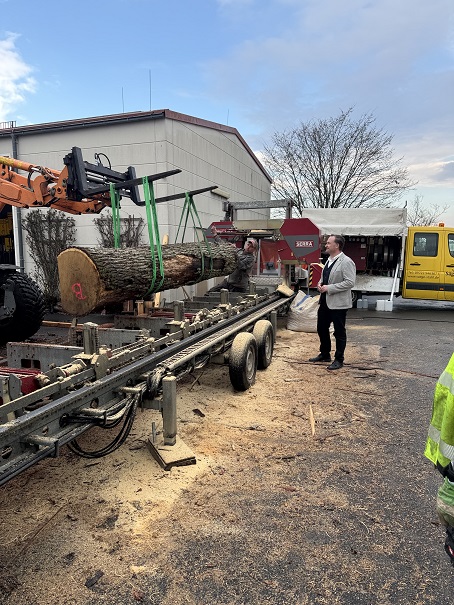 „Bereits zum zweiten Mal in Folge haben wir ein mobiles Sägewerk direkt auf dem Bauhof im Einsatz. So können die sorgfältig ausgewählten und gefällten Stämme direkt vor Ort zu robusten Bohlen, Brettern und Balken verarbeitet werden. Diese kurze Verarbeitungskette spart nicht nur Zeit, sondern auch Transportwege und Geld.“, erklärt Bürgermeister Christian Keller.