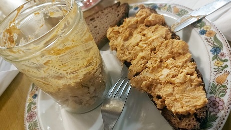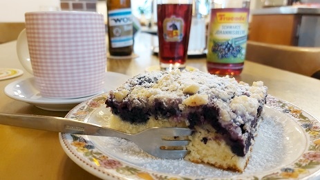Über das leckere helle Bockbier wurde an dieser Stelle ja schon viel geschrieben. Und auch die Speisen, die diesmal auf den Tisch kamen, erfuhren bereits genügend Schwärmerei. Wobei: Einmal geht noch! Der Salat, einmal mit und einmal ohne Hähnchen-Nuggets und der frisch zubereitete Gerupfte freuten sich über den Blaubeerkuchen als weiteren Tischnachbarn.
