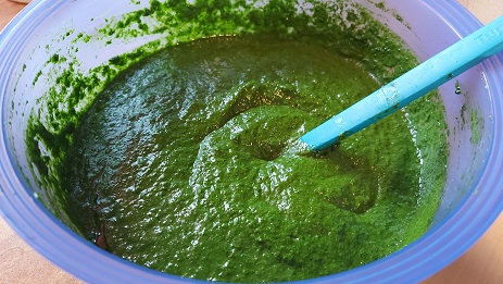 Petra zerkleinerte zuhause die Blätter und machte daraus nicht nur Pesto, sondern dank der sonst vor allem vor Weihnachten genutzten Förmchen auch leckere Frühlings-Plätzchen. Diese sind giftgrün und sehen zum Anbeißen aus, oder?
