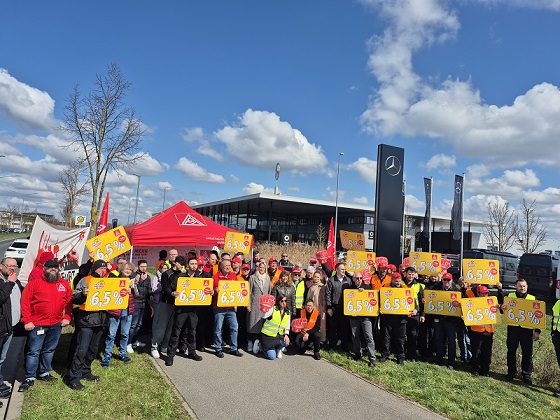 Am Dienstagmittag (01. April) legten rund 80 Beschäftigte des Autohauses Emil Frey in Schweinfurt für eine Stunde die Arbeit nieder. „Es ist an der Zeit, dass die Arbeitgeber Verantwortung übernehmen und ein faires Angebot vorlegen“, betonte Reiner Gehring, Zweiter Bevollmächtigter der IG Metall Schweinfurt. „Wir wollen jetzt die Kaufkraft der Beschäftigten stärken.“