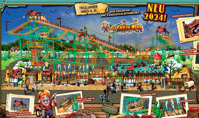 Im Bereich der Achterbahnen ist in diesem Jahr der vollthematisierte Spinning Coaster Crazy Mine erstmals zu Gast in Schweinfurt. Der Fahrgast kann selbst entscheiden, ob sich die Gondel je nach Streckenverlauf komplett frei um 360° mit Spinning-Effekt dreht oder starr der Fahrtrichtung folgen soll. Die rasante kurvige Fahrt mit steilen Abfahrten führt über eine Schienenlänge von 430 m und überwindet dabei Höhenunterschiede von 17 m.