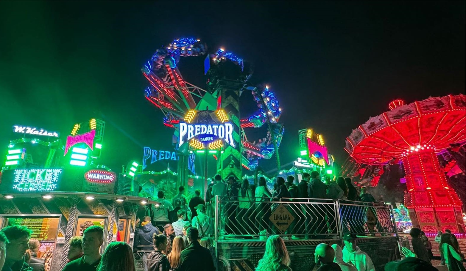 Zu Gast ist dieses Jahr ein Hoch-Rundfahrgeschäft der Superlative: Predator. An zwei hydraulisch hochfahrenden Masten ist die zentrale Dreheinheit des Fahrgeschäftes montiert. Der daran befestigte Gondelkreis mit zehn Vierergondeln rotiert und überschlägt sich dabei zusätzlich um die eigene Achse. Das Fahrgeschäft ist besonders für die Jugend und Junggebliebenen mit stabilem Magen ein willkommener Adrenalinkick.