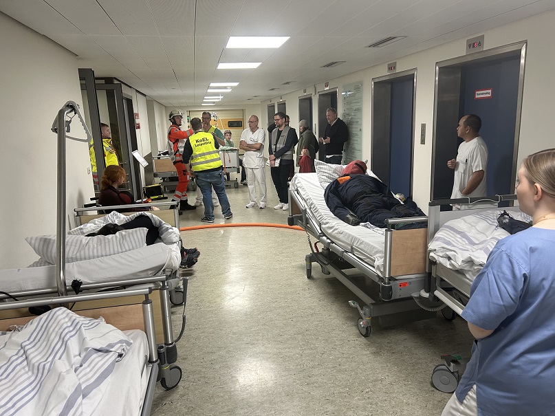 Für den gemeinsamen Informationsaustausch aller Beteiligten wurden auch die internen Vorgänge des Krankenhauses durch die Leitungsfunktionen beübt und kritisch hinterfragt. So galt es beispielsweise, Patienten in die eigene Notaufnahme zu verlegen, dort ärztlich zu sichten und eine Entscheidung über den weiteren Behandlungsweg zu treffen.