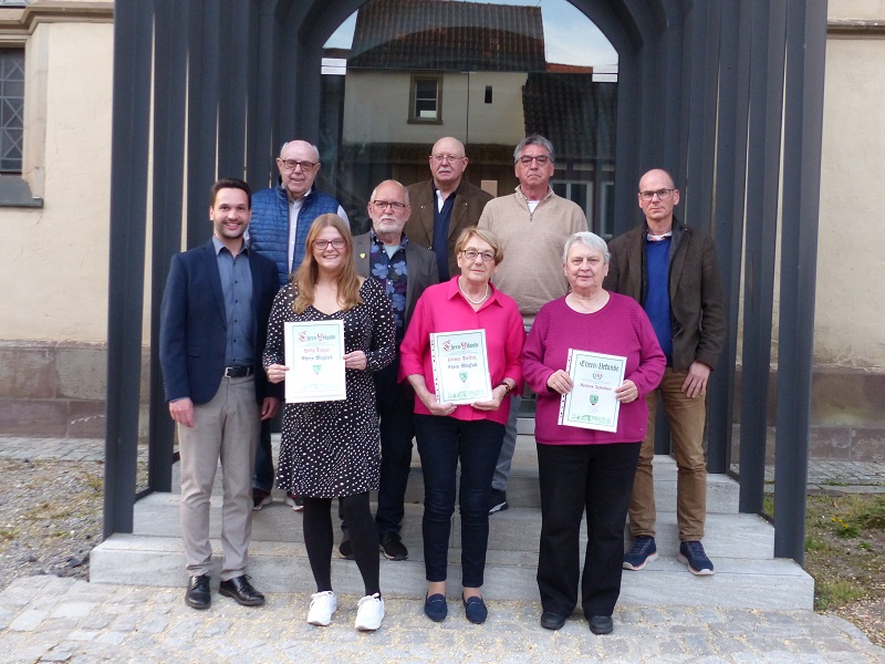 Für ihre 10-jährige Mitgliedschaft wurden Helene Schöner, Dirk Hachtel, Helga Manneck und Holger Fischer, für 25 Jahre Rainer Ludwig, Heiko Kuschel, Jakob Hegelmann und Emil Weber geehrt. Für 40 Jahre mit Gold ausgezeichnet wurden Günter Hack, Andrea Schöner, Max Gehles, Dr. Carlotte Krämer und Gerd Müller. Für besondere Verdienste, die der Vorsitzende auch auflistete, wurden Günter Hack, Helmut Siefritz und Willy Denzer zu Ehrenmitgliedern ernannt. Denzers Enkelin Jasmin Lampka, jüngstes Vereinsmitglied nahm die Urkunde entgegen. Gewürdigt wurde in diesem Zusammenhang auch der unermüdliche Arbeitseinsatz des 90-jährigen Heinz Winkelmann.