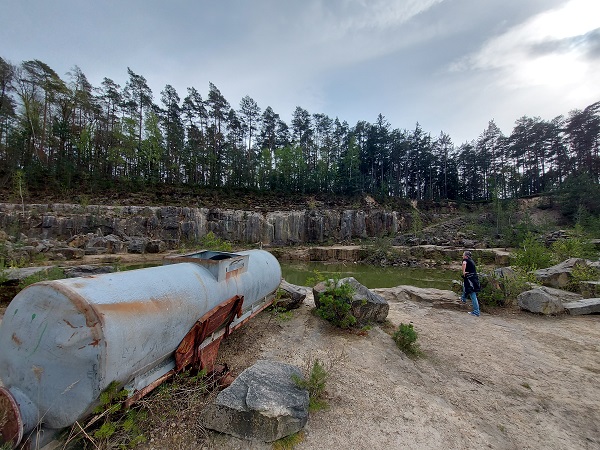 Um den Wald herum oder durch den Wald führt der Weg mit einer Länge von 7 bis 10 Kilometern, je nachdem, welche Pfade man wählt. Und wie es gelingt, das schwer zu findende Highlight der Wanderung zu erreichen: Einen versteckten Steinbruch genau in der Mitte der vier genannten Orte. Eien Art Lost Place inmitten der Natur…