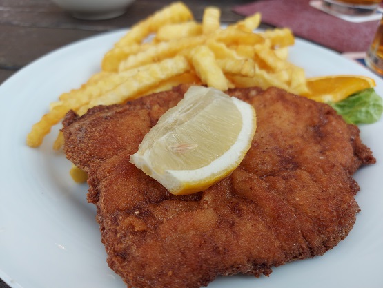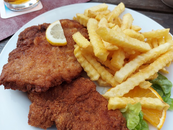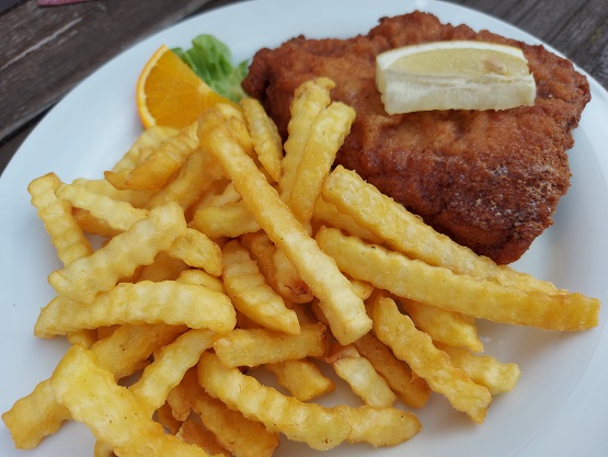Es gab einen süffigen Maibock, wozu sich die beiden Schonunger zu jeweils Pommes Frites und Beilagensalat für einmal klassisch das Schnitzel Wiener Art und für das Cordon Bleu entschieden. Gut gestärkt ging´s danach die rund 85 Kilometer wieder zurück in die Heimat.