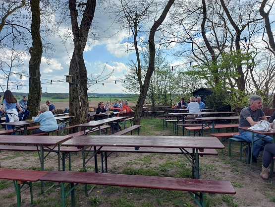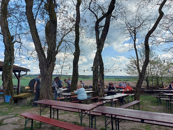 Nun ist es nicht mehr weit zurück nach Uehlfeld. Ein paar hundert Meter führt der Weg noch durch den Ort zurück zum Ausgangspunkt. Nach den fast acht Kilometern ist eine Stärkung erlaubt. Gerne mit Karpfen, sicher nicht mit Storchenfleisch…