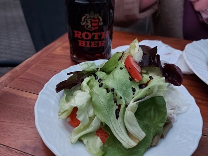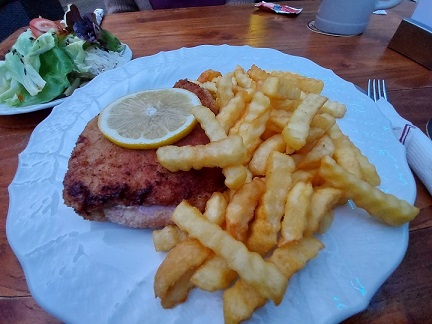 Punkt 17 Uhr gingen dann die Lichter an im Gasthaus Straub. Wer gerne fränkisch isst, sollte hier mal vorbei schauen. Statt Sauerbraten, Gänsekäule oder Schäuferle wählten die hungrigen Gäste Schweinelendchen mit Schinken und Käse überbacken auf Käsesauce sowie den Zwiebelrostbraten, den kurz gebratenen Rinderrücken mit selbstgemachten Röstzwiebeln – jeweils mit Pommes und Salat. Scgaut gut aus, oder?