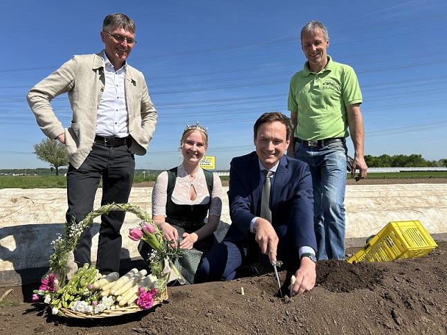 Den symbolischen Auftakt machte der Spargelanstich auf dem Feld von Armin Braun in Garstadt. Gemeinsam mit Landrat Florian Töpper, der Spargelprinzessin des Landkreises Schweinfurt, Lena Ziegler, Bürgermeister Ulrich Werner (Bergrheinfeld) und Gastgeber Armin Braun wurde damit die Spargelsaison eingeläutet.