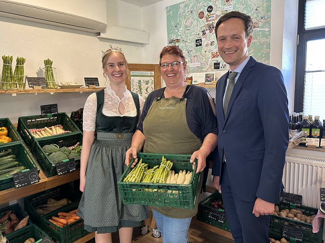 Die Veranstaltung zeigte beispielhaft, wie der Spargel seinen Weg vom Feld bis auf den Teller findet. Vom Anbau durch heimische Betriebe, über die Vermarktung in Spargelhütten, Hofläden und Partnern wie dem Unverpackt-Laden „Weltkind“ in Werneck, bis hin zum Genuss in der regionalen Gastronomie.