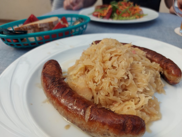 Kurzum: Dieses Wirtshaus könnte ideal sein für die traditionsbewussten, hungrigen Schweinfurter, weil hier fränkisch gekocht wird. Auf die Speisekarte nach dem Feiertag darf man sich freuen. Die beiden Gäste aus Schonungen, mutmaßlich demnächst Stammgäste, freuten sich über die groben Bratwürste mit einmal einem großen Salat und einmal Kraut und Brot.