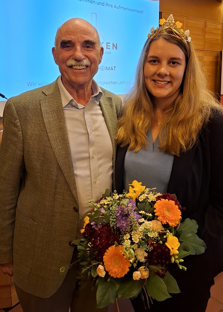 - Der Präsident des Fränkischen Weinbauverbands Artur Steinmann zusammen mit der frisch gekürten 67. Fränkischen Weinkönigin Antonia Kraiß. Foto: Stephan Schmidt / Fränkischer Weinbauverband e. V.