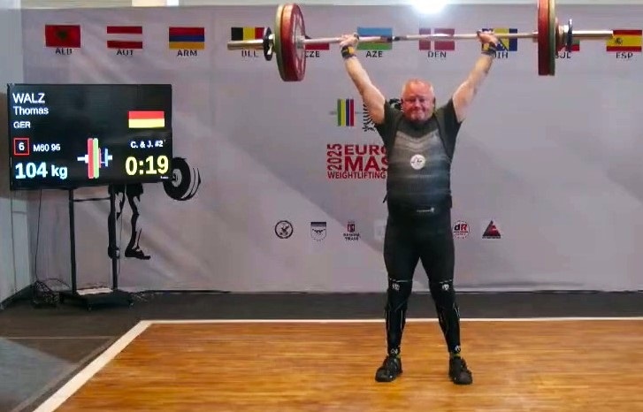 In der Altersklasse „M60 bis 96 kg“ trat der Schweinfurter gegen neun Mitstreiter an. Nachdem im Reißen nach zwei technischen Fehlern nur der Anfangsversuch mit 71 kg in die Wertung kam, lag Walz nach dieser Teildisziplin nur auf dem 7. Rang.