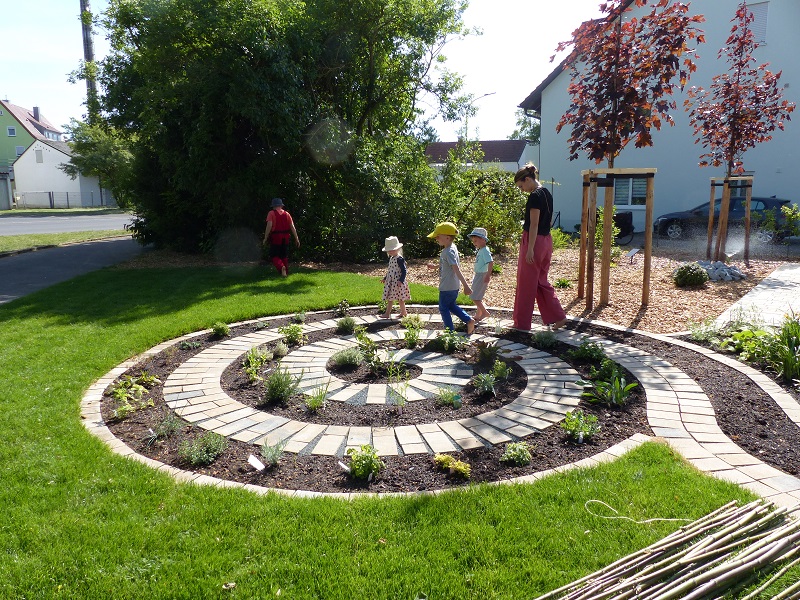 Natürlich wurde auch die Kräuterspirale am neuen Platz der Begegnung beschritten, doch diese wird wie der gesamte Platz erst in naher Zukunft offiziell vorgestellt und von Pfarrer i.R. Thomas Klemm eingeweiht.
