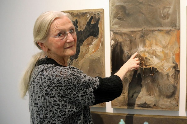 Auf dem Bild © Kerstin Schmeiser-Weiß (POW) | „Die Große Fülle“ ist erstmals in der Öffentlichkeit zu sehen. Links die Künstlerin Ute Rakob, rechts Museumskurator Michael Koller.